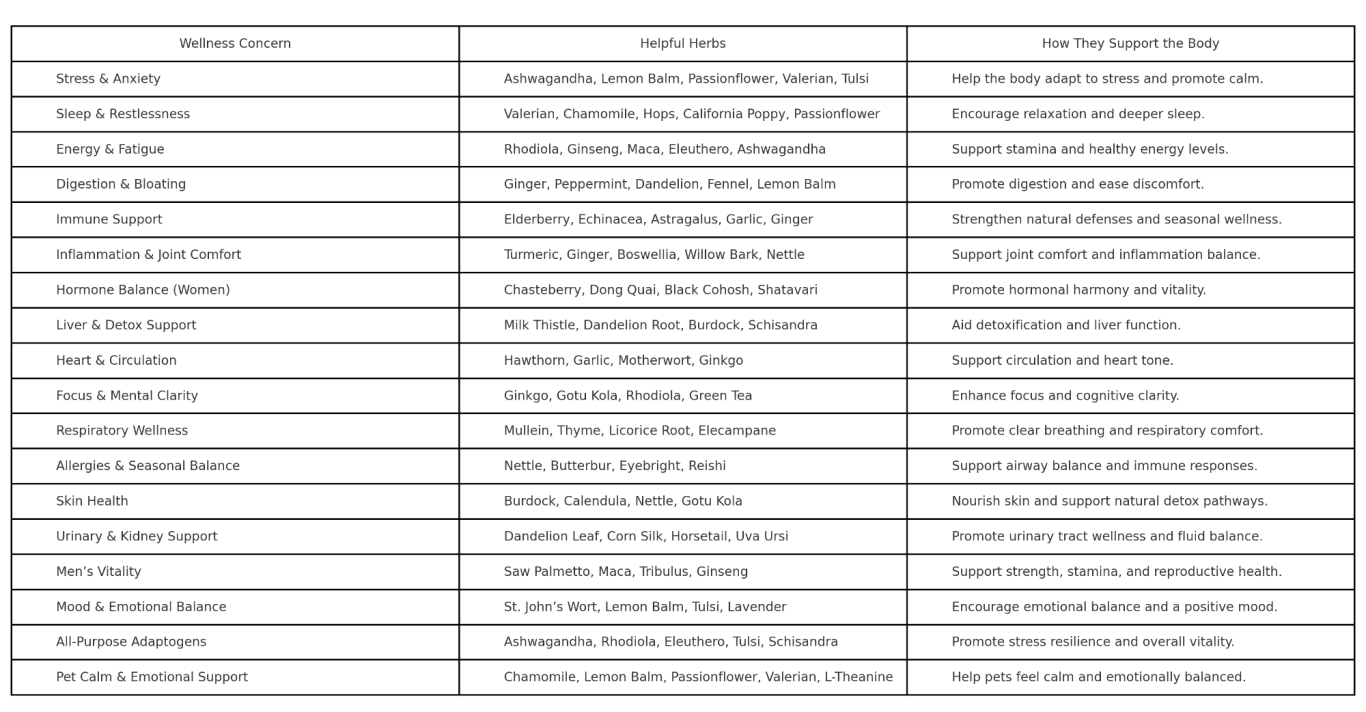 🌿 Herbal Remedies Quick Reference Chart